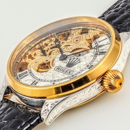 カスタムには、ムーブメントに彫金を行ったり 文字盤を新たに作ったりと、世界でこれしかない一品物の加工 です。
