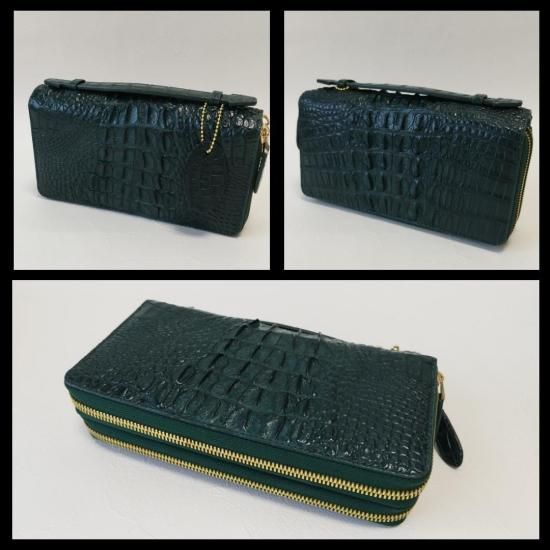 ★ダークグリーン★人気カラー★ダブルファスナー★長財布★クロコダイル★ゴツい背革★本物鑑定証あり★ハンドバッグ★緑★ミドリ★メンズ★100万円収納