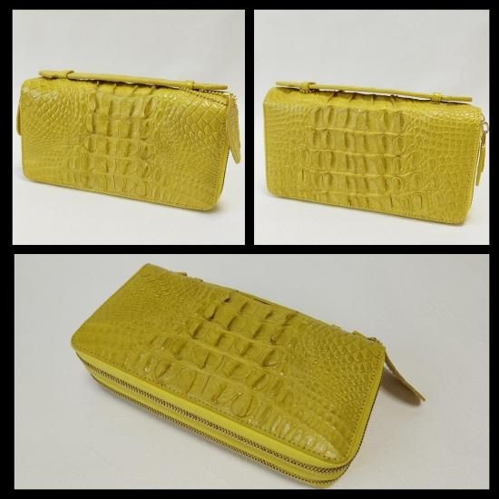 ★イエロー★希少カラー★ダブルファスナー★長財布★クロコダイル★ゴツい背革★本物鑑定証あり★ハンドバッグ★黄色★メンズ★100万円収納